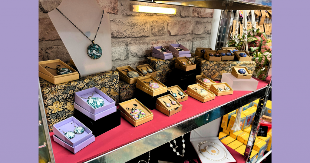 I’ve been working with Molarky since October last year, and it’s been such a lovely partnership. The story of how we connected is rather serendipitous, really – I spotted a call-out on social media from Mo, the shop owner, looking for local makers. I got in touch, and she immediately fell in love with my William Morris jewellery collection. From there, it just felt like the perfect fit.