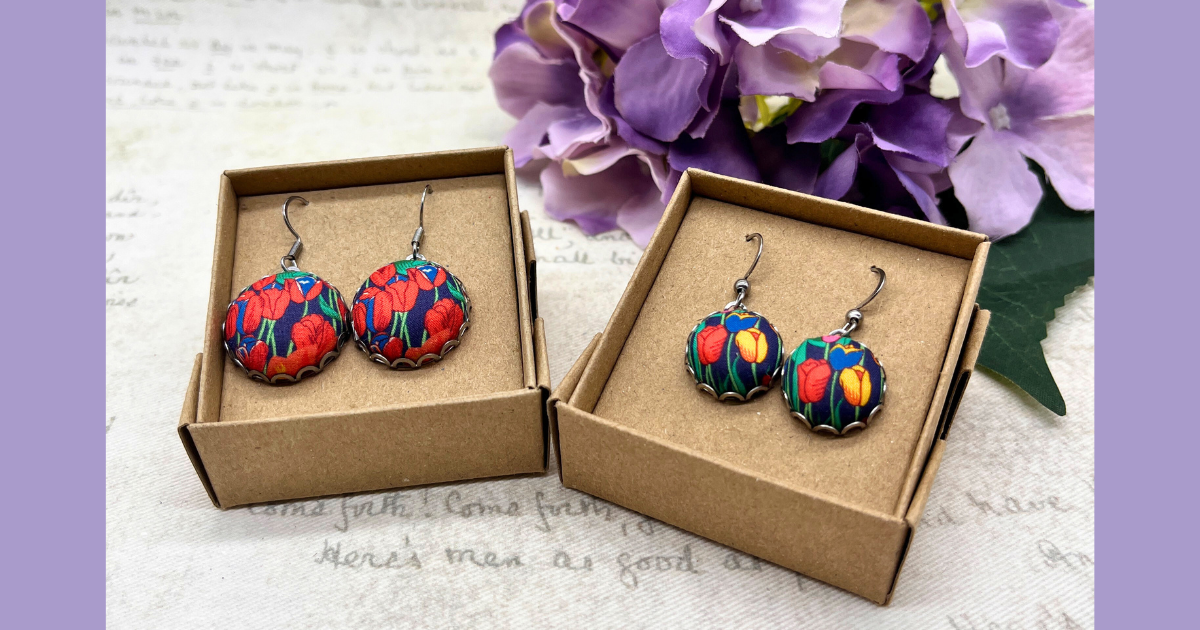 As always, I’ve been working with a mix of carefully chosen fabrics, each with its own story. Some of the pieces feature luxurious Liberty of London fabrics – those dazzling colours and high quality prints that Liberty is renowned for. The tulip earrings, in particular, have become an instant favourite of mine. That vibrant red just *pops*, doesn’t it? There’s something so confident and joyful about wearing a bold splash of colour.